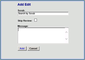 The Scrub field expects text which searches existing add edit entries, you can search by scrub ID or scrub name.