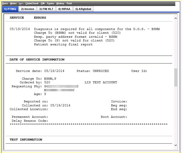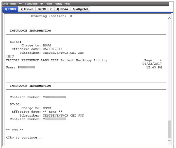 This tab shows the PTINQ screen as it is currently displayed for this accession in FIN, if any data is available.